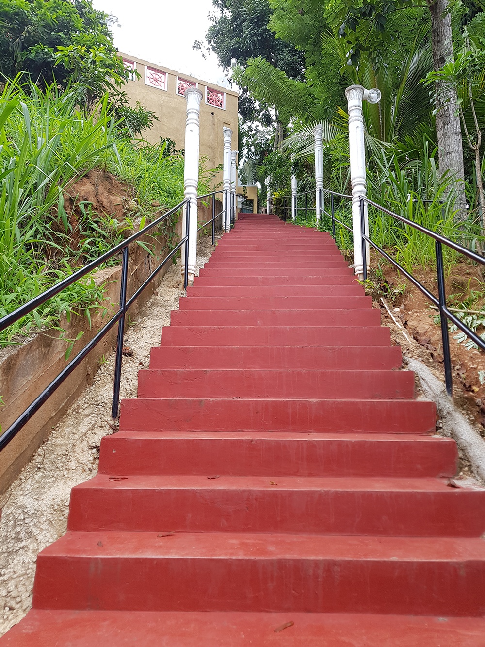 It has beautiful Samanala peaks, Ambuluwawa mountain in front, the mountain range of Lankatilaka Vihara and the Mahaweli river flowing down. ThisThe eyes of all the devotees who visit the place are refreshing.